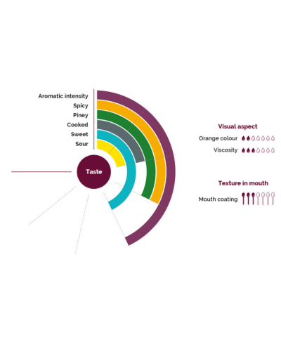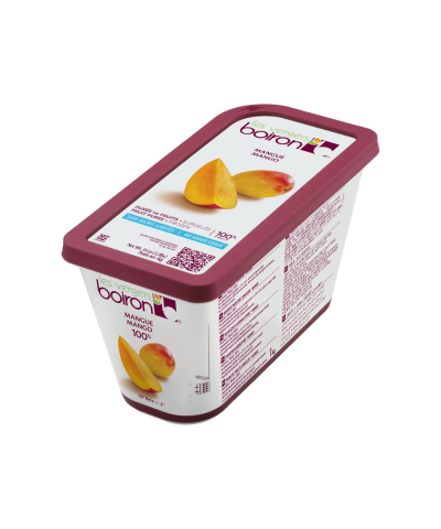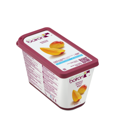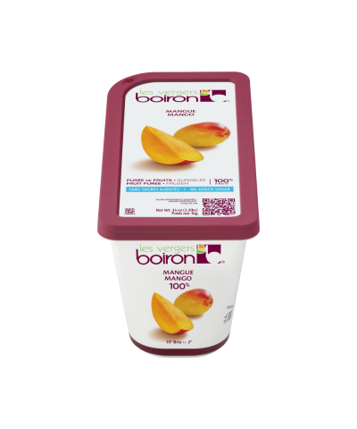 The mango puree prepared by ‘Les vergers Boiron’ is a unique blend of two complementary varieties: Alphonso and Kesar, produced in Western India. The fruit is picked by hand to finish its ripening under straw, where the prevailing heat is ideal for developing of all of its aromas. The fruit is then individually selected when it has reached the required level of ripeness.