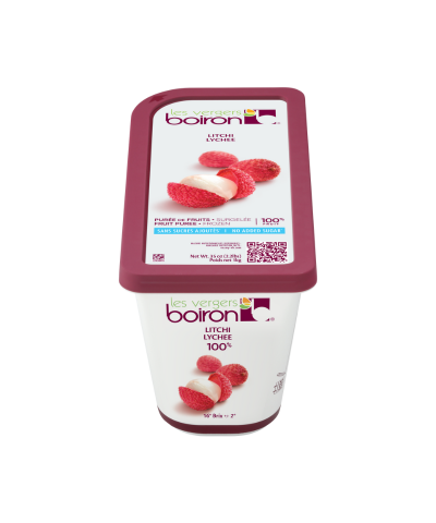 ‘Les vergers Boiron’ lychee puree is made from a blend of raw materials harvested in Asia and Africa. In Taiwan, the Black Leaf variety is grown in large plantations. In Madagascar, the Mauritus variety is picked by hand from wild trees (therefore not treated) that can be over 100 years old and still produce!