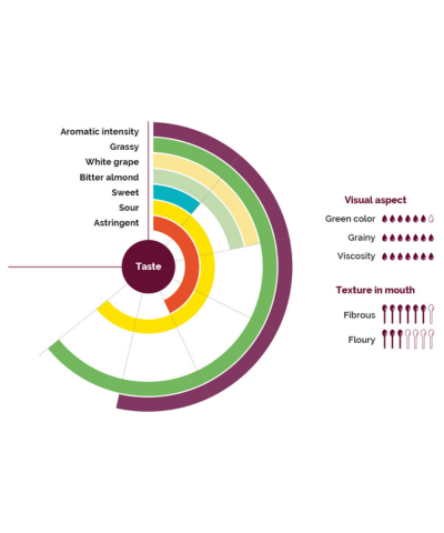 ‘Les vergers Boiron’ apple puree contains all the tartness of Granny Smith apples. It also possesses more subtle green aromatic notes reminiscent of grass, bitter almonds or grapes.