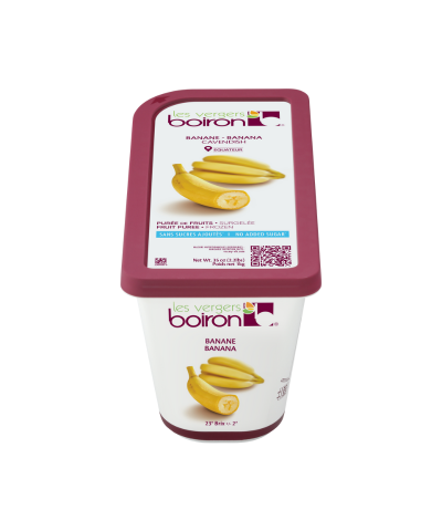 ‘Les vergers Boiron’ banana puree is made with fruit of the Cavendish variety that comes from Ecuador. ‘Les vergers Boiron’ selects this origin on account of the fruit’s higher sugar level. The banana is a climacteric fruit. Perfect management of the ripening process (temperature, humidity, number of days, ventilation) makes it possible to obtain fruit that is optimally ripe for being transformed into purees and for developing all its aromas.