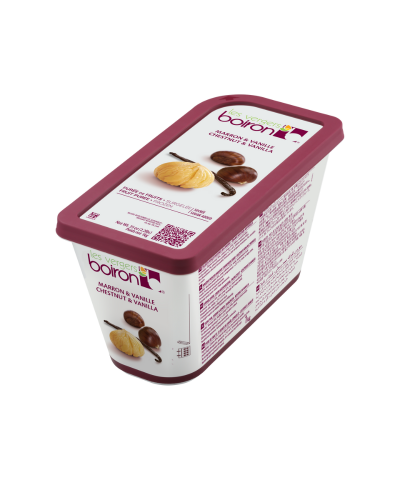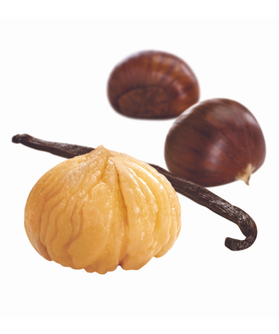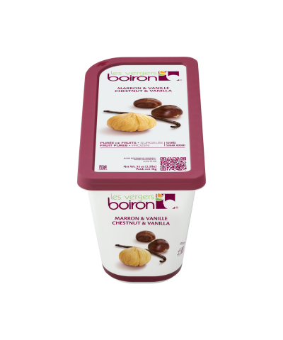 Les vergers Boiron carefully selected Madagascar vanilla cloves to this 100% natural chestnut puree. The vanilla is finely ground and then infused in a sugar syrup. All the aromatic notes of vanilla intermingle with those of the chestnut puree. This original mixture produces an unrivalled taste and qualifies it as a “Gourmet Puree”.