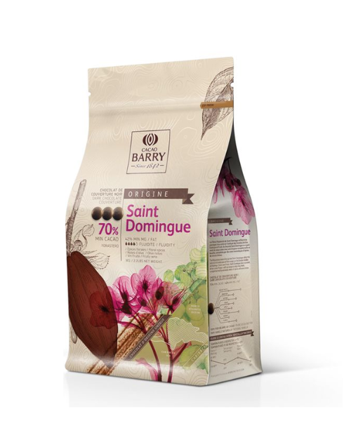 This dark organic chocolate made from beans grown in Santo Domingo is an intriguingly dark chocolate with an adventurous perfume of blue fruit, humus and spicy cedar. Its gradually dissipating woody taste will surely entice the more experienced chocolate gourmet.