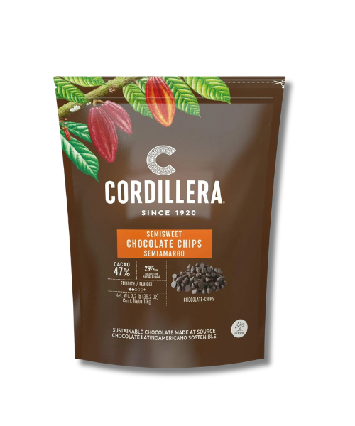 Cordillera Semisweet Chocolate Chips (47%) – Perfectly shaped chocolate drops with a rich semi-dark flavor. Ideal for inclusions or decorations in baked goods and desserts. Oven-stable for flawless results every time.