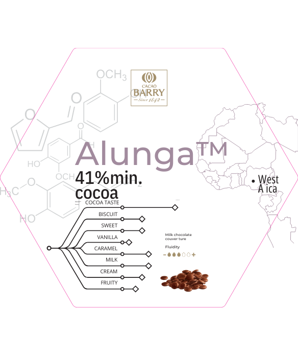 Alunga Chocolate is a premium-quality chocolate made from carefully selected cocoa beans, expertly crafted by the master chocolatiers at Cacao Barry. This chocolate boasts a rich, smooth, and indulgent flavor profile, with notes of caramel and roasted nuts. Its velvety texture and exquisite taste make it a versatile ingredient for a wide range of culinary applications, from baking and confections to desserts and beverages. Whether you're a professional chef or a passionate home cook, Alunga Chocolate is the perfect choice for adding a touch of luxury to your creations.