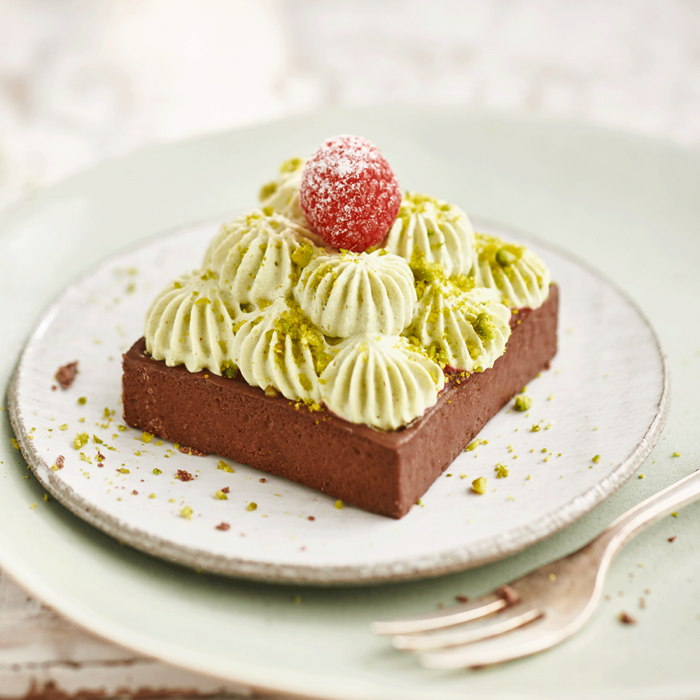Crunchy filling with 12% roasted pistachios and 20% biscuit pieces.